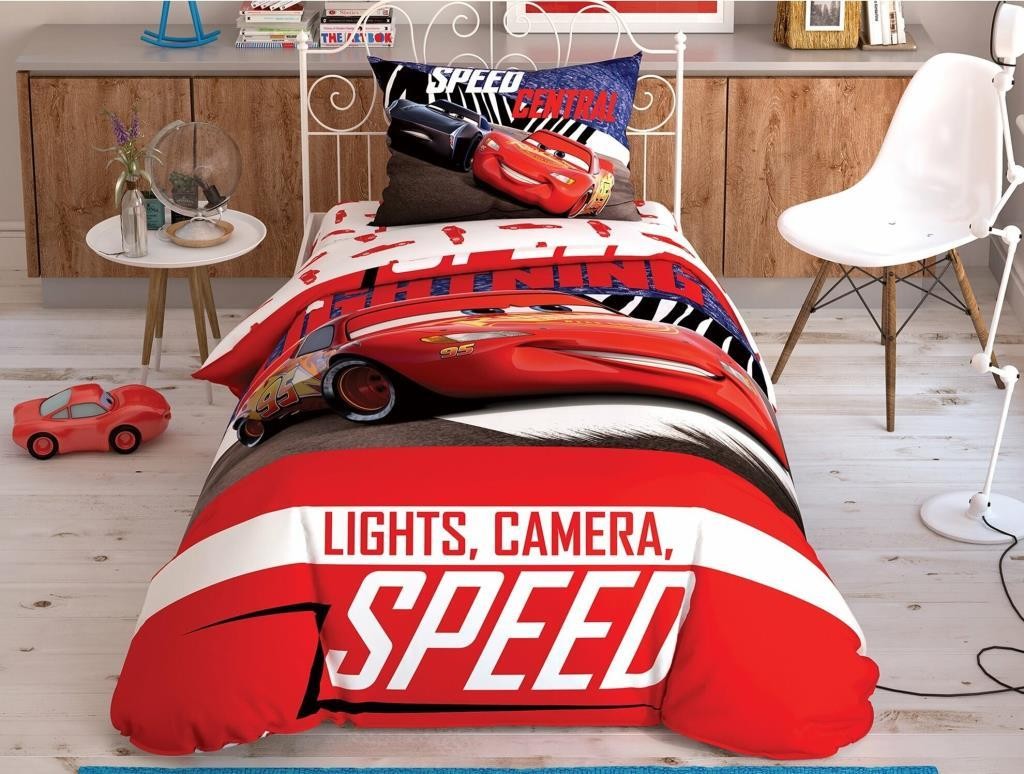 Taçlisanslı disney cars shiny road parlayan tek kişilik nevresim takımı.